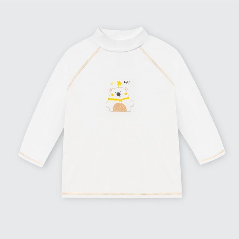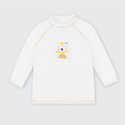 Áo cổ 3cm La Pomme giữ nhiệt bạn nhỏ vui nhộn Trắng