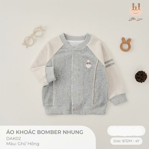 Áo Khoác Bomber Nhung LIL Ghi Thêu Gấu