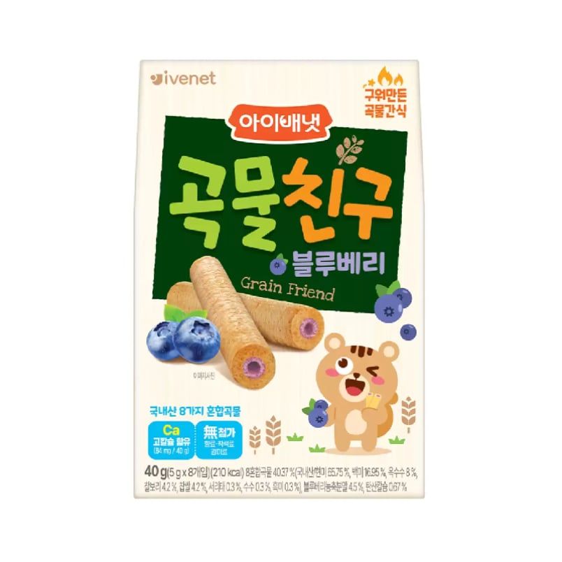 Thành phần: 8 loại ngũ cốc hỗn hợp (Hàn Quốc) 40,37% [Gạo lứt 65,75%; Gạo trắng 16,95%; Ngô 8%; Lúa mạch 4,2%; Gạo nếp 4,2%; Đậu đen hạt xanh 0,3%; Cao lương 0,3%; Gạo đen 0,3%], Dầu cọ Olein (Malaysia), Bột cô đặc quả việt quất (Mỹ) 4,5%, Bột sữa gầy, Glucose tinh thể khan, Bột lòng đỏ trứng, Đường trắng, Canxi cacbonat 0,67%, Tocopherol (Loại hỗn hợp), Muối biển tự nhiên (Hàn Quốc). Chứa Trứng, Sữa và Đậu nành.