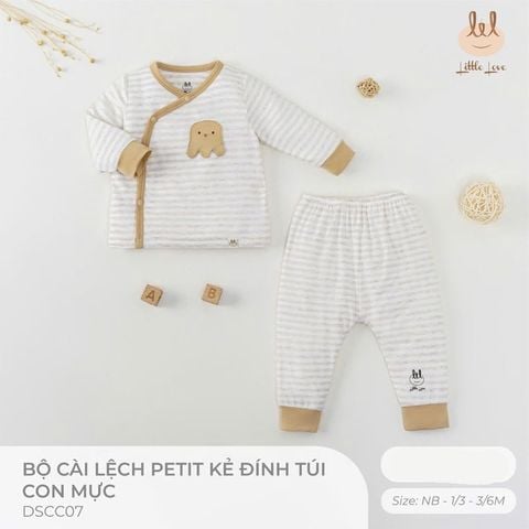 Bộ Cài Lệch LIL Petit Kẻ Đính Túi Con Mực Be