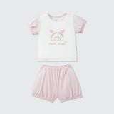 Bộ cộc tay La Pomme cua hồng dạo biển nằm trong BST Xuân Hè 2026 của La Pomme. Thiết kế này sử dụng tông màu hồng phối trắng kem, mang lại vẻ ngoài vô cùng ngọt ngào và nữ tính. Áo được thiết kế phối màu hài hòa giữa thân áo trắng kem và phần tay phồng màu hồng nhẹ nhàng. Chính giữa ngực áo là hình in một bạn cua ngộ nghĩnh, giúp set đồ thêm phần ấn tượng. Chiếc quần mang tông màu hồng được thiết kế theo dáng quần bí (bloomers) phồng nhẹ ở ống, vừa thời trang, vừa phong cách cho bé. Sản phẩm được thiết kế và sản xuất tại Việt Nam - độc quyền bởi thương hiệu quần áo trẻ em, đồ sơ sinh La Pomme, sở hữu đặc tính mềm mịn, an toàn cho bé, phù hợp trong tủ đồ quần áo của bé gái.