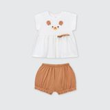 Bộ cộc tay La Pomme Thế giới bé xinh nằm trong BST Ji Won của La Pomme. Thiết kế nhẹ nhàng với áo dáng xòe bồng bềnh, kết hợp hình gấu ngộ nghĩnh tạo điểm nhấn đáng yêu. Tai gấu 3D mềm mại cùng chiếc nơ nhỏ bên ngực áo làm tăng thêm nét tinh nghịch và dịu dàng cho bé yêu. Sản phẩm được thiết kế và sản xuất tại Việt Nam - độc quyền bởi thương hiệu quần áo trẻ em, đồ sơ sinh La Pomme, sở hữu đặc tính mềm mịn, an toàn cho bé, phù hợp trong tủ đồ quần áo của bé gái.