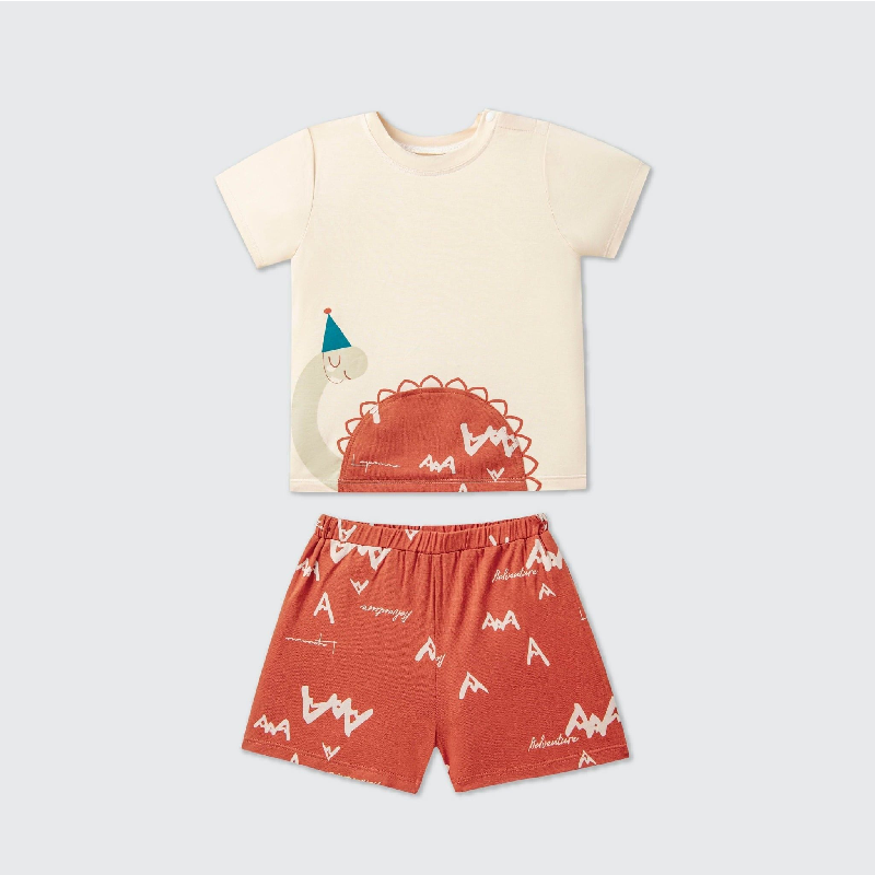 Bộ cộc tay La Pomme tiệc sinh nhật bé khủng long Cam