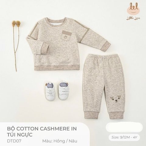 Bộ Cotton LIL Cashmere In Túi Ngực Kem Nâu
