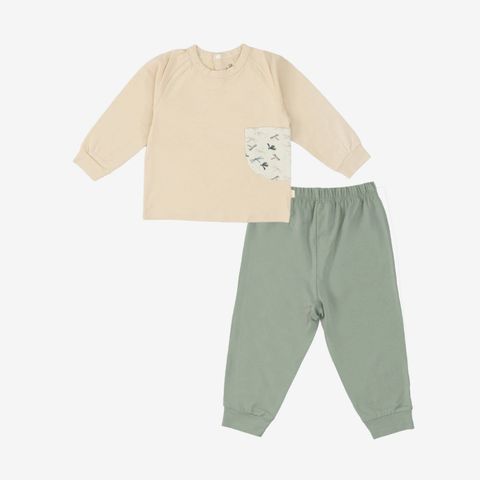 Bộ dài tay raglan cài sau Túi ngực Dona với thiết kế cúc sau gáy giúp tăng chu vi cổ áo, cởi/mặc dễ dàng. Phối túi tạo điểm nhấn thời trang. Chun quần mềm mại, ôm bụng sữa. Bo ống tay/chân hạn chế xô lệch, lòa xòa. 100% bamboo cotton (sợi tre bông) mềm mại, kháng khuấn và siêu thấm hút.