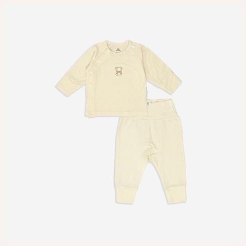Bộ dài tay cài chéo 11 Bambus Bu Baby A08 Kem