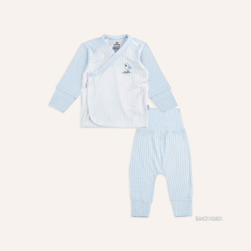 Bộ dài tay cài chéo Bu Baby K59 Trắng 8442 - Blue 8442