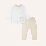 Bộ dài tay cài giữa, cổ tàu Jacquard Bu Baby 23A Trắng - Be