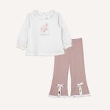 Bộ dài tay cài sau cổ bèo Bu Baby B34 Trắng - nâu sữa