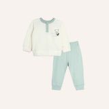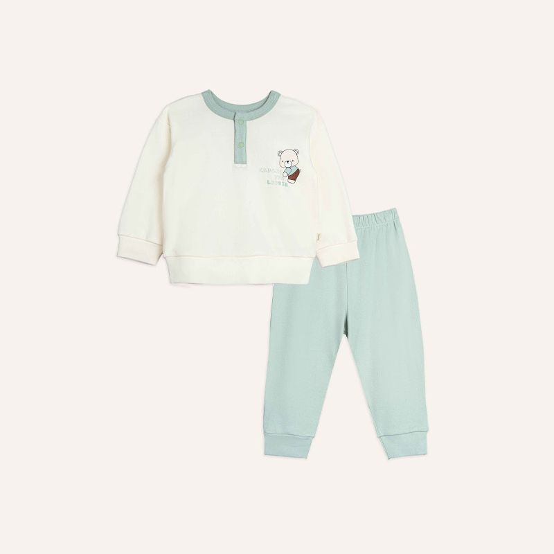Bộ dài tay cổ trụ Bu Baby O92 Trắng kem - xanh ghi
