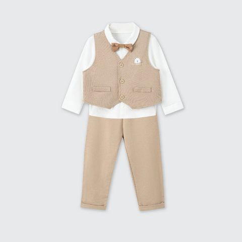Bộ dài tay La Pomme Happy Holiday (kèm áo Gile) nằm trong BST Quần áo trẻ em Thu Đông 2024 của La Pomme. Bộ trang phục bao gồm bốn món: Một áo vest gile, một áo polo dài tay, một quần ống đứng và một chiếc nơ đi kèm. Thiết kế áo vest gile và nơ cổ thanh lịch cùng chi tiết hình in chú gấu trắng đáng yêu tạo nên một bộ trang phục tinh tế cho những bữa tiệc ấm áp. Sản phẩm được thiết kế và sản xuất tại Việt Nam - độc quyền bởi thương hiệu quần áo trẻ em La Pomme, sở hữu tính ứng dụng cao - bé mặc ở nhà, đi học hoặc đi chơi, phù hợp trong tủ đồ quần áo cho bé trai.