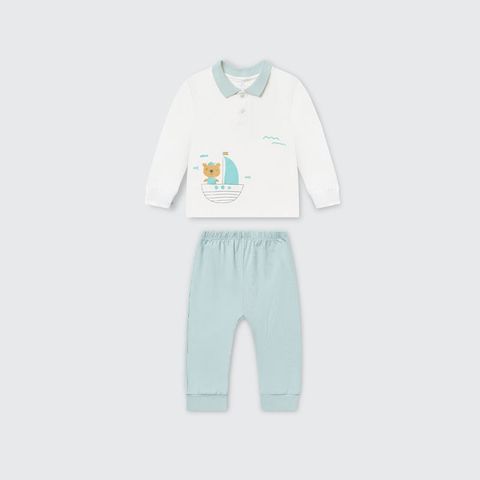 Bộ dài tay La Pomme Polo thuyền buồm ra khơi Trắng