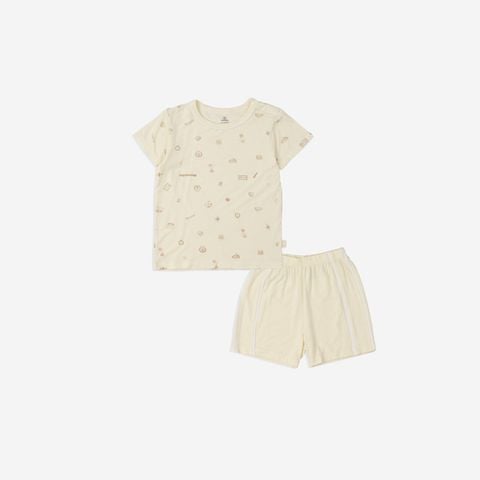 Bộ ngắn tay cài vai Bu Bambus - Kem in họa tiết kỷ vật - kem
