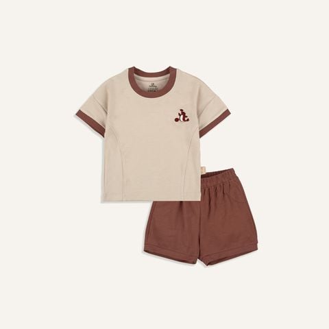 Bộ ngắn tay cổ tròn Bambus Bu - Be 007 - Nâu san hô