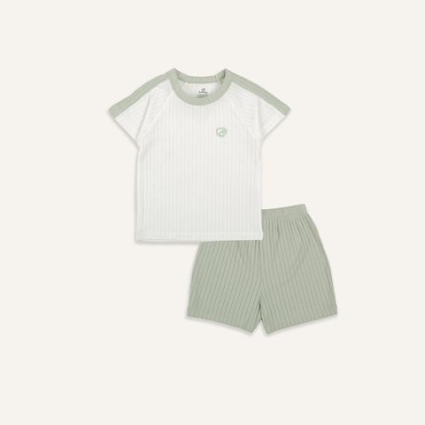 Bộ ngắn tay raglan Bu cổ tròn Molist - Trắng 8442 - Xanh olive 8442