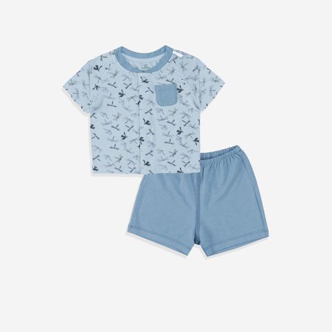 Bộ ngắn tay raglan cài giữa Dona Bu - Blue in chuồn chuồn - Xanh đậm
