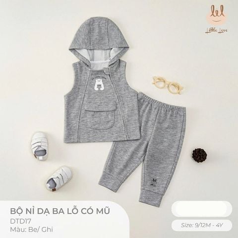 Bộ Nỉ Dạ LIL Ba Lỗ Có Mũ Ghi