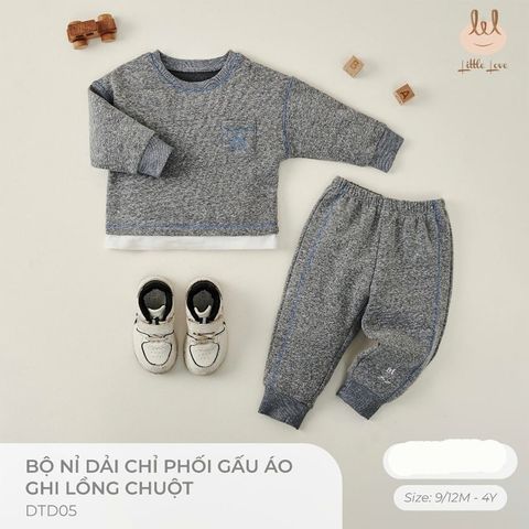 Bộ Nỉ Dải Chỉ Phối Gấu LIL Áo Ghi Lồng Chuột