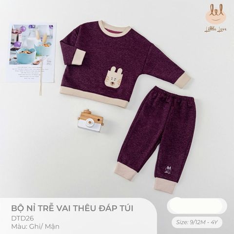 Bộ Nỉ Trễ Vai LIL Thêu Đáp Túi Mận