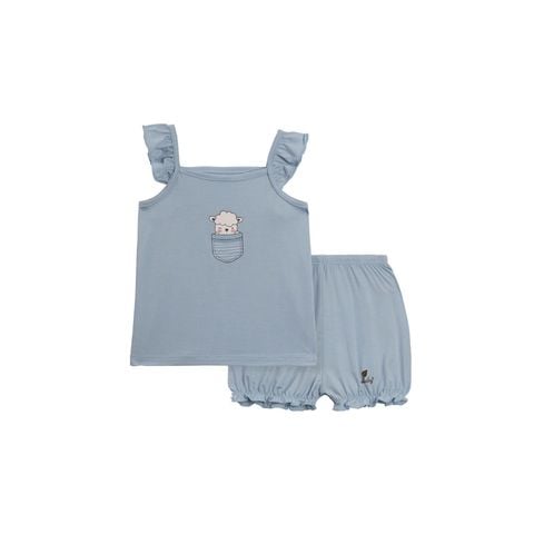 Bộ sát nách bé gái Lullaby NH985R - Xanh ghi