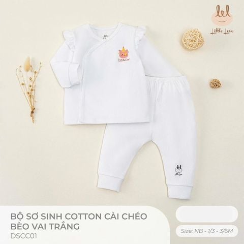 Bộ Sơ sinh LIL Cotton Cài Chéo Bèo Vai Trắng