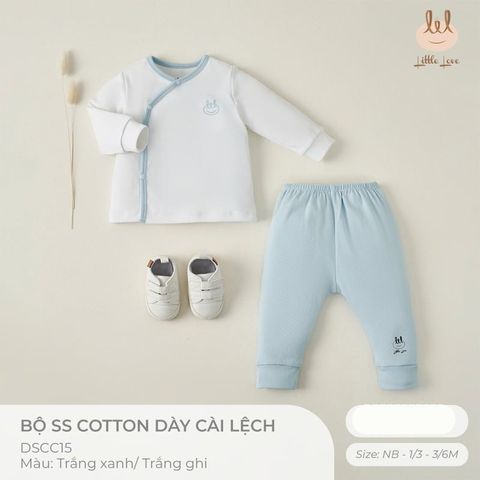 Bộ sơ sinh LIL Cotton Cài Chéo Trắng Xanh