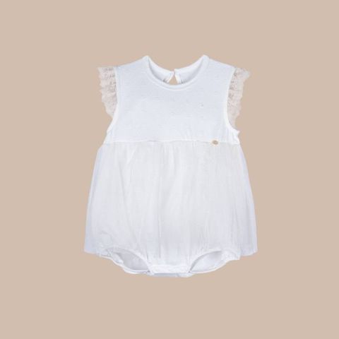 Cúc giọt lệ cài sau giúp tăng chu vi cổ áo, cởi/mặc dễ dàng. Vai cánh tiên mềm mại, nữ tính. Phối ren bồng bềnh, điệu đà. Chun đùi ôm nhẹ, thoải mái. Thành phần sợi 100% pure cotton (bông tinh khiết), an toàn cho làn da nhạy cảm.