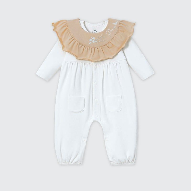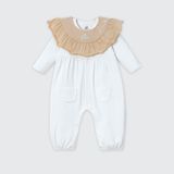 Body dài tay La Pomme baby princess là một thiết kế đặc sắc của BST Thu Đông 2025 của La Pomme. Để công chúa nhỏ luôn diện xinh mọi lúc, mọi nơi, La Pomme mang tới thiết kế body liền cách điệu với phần hông được may xếp ly điệu đà, phần yếm được may rời và phối viền bèo xinh xắn, mang thêm nét thời trang về tủ cho bé. Sản phẩm được thiết kế và sản xuất tại Việt Nam - độc quyền bởi thương hiệu quần áo trẻ em, đồ sơ sinh La Pomme, sở hữu đặc tính mềm mịn, an toàn cho bé, phù hợp trong tủ đồ quần áo của bé gái.
