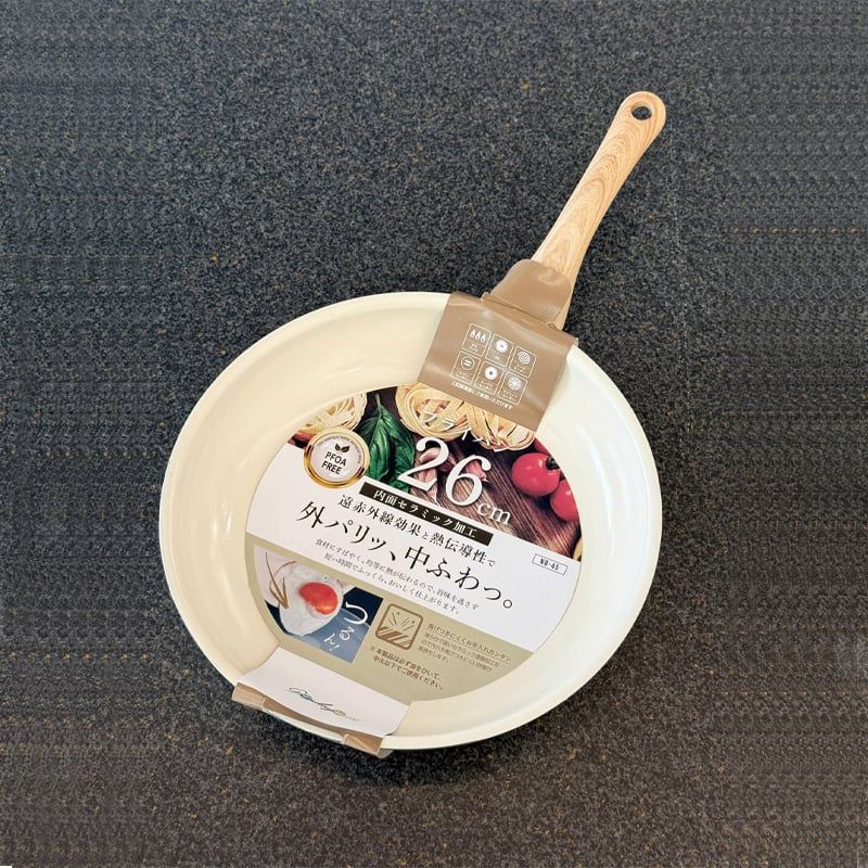 Chất liệu: thân hợp kim nhôm phủ chống dính ceramic, đáy từ, tay cầm nhựa phenolic dạng vân gỗ