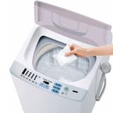 Cắt gói film, đổ bột trực tiếp vào lồng máy giặt, rồi bấm nút cho nước vào giặt khoảng 10 phút, tắt máy, để ngâm 2~4 tiếng, sau đó bật máy lại cho giặt - xả - thoát nước như thông thường.