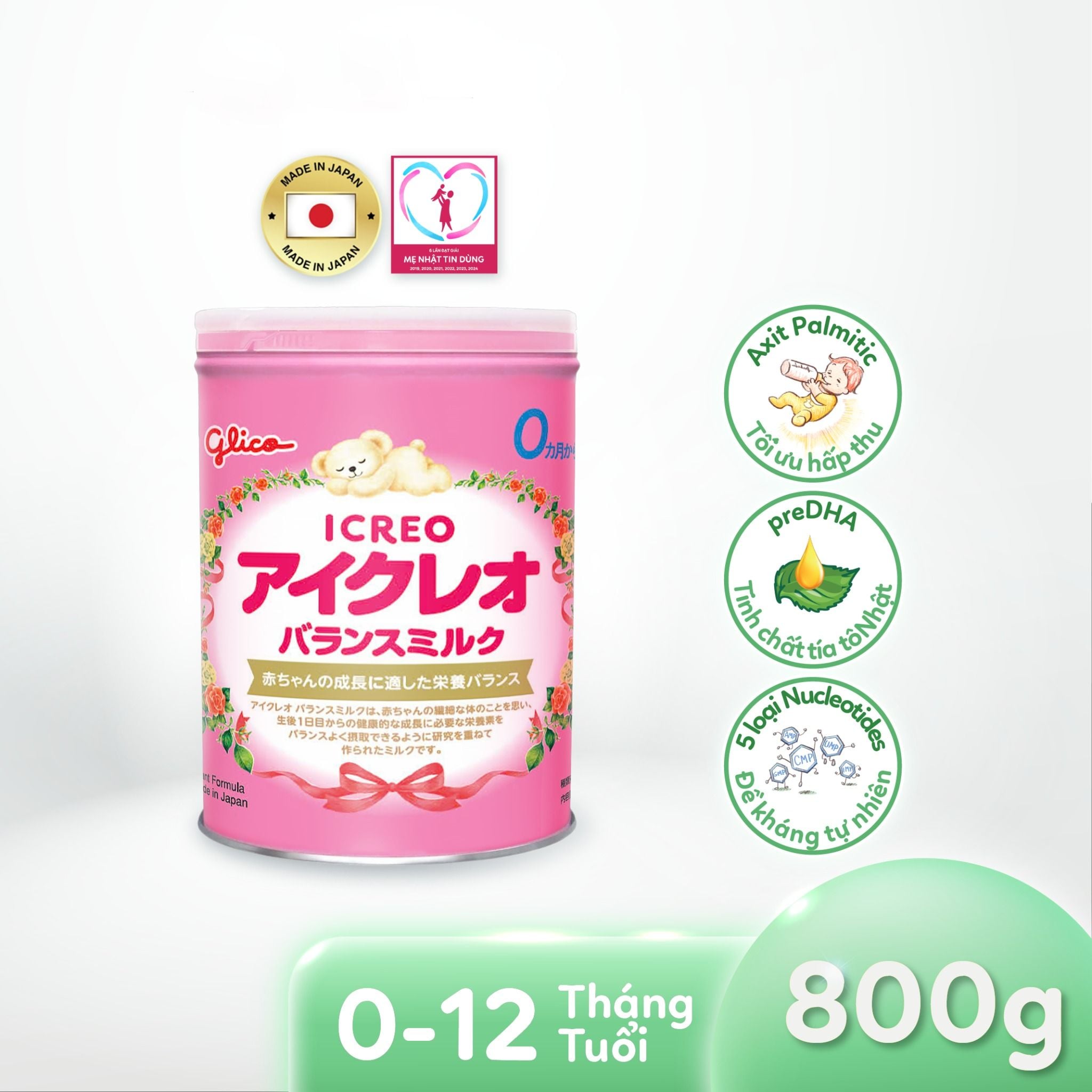 Sản phẩm Glico Icreo số 0 Nội Địa Nhật Bản dành cho bé từ 0 - 12 tháng tuổi là sản phẩm có giá trị cao nhất*, được Mẹ Nhật tin dùng nhất** và là sự lựa chọn của hơn 900 bệnh viện tại đất nước Mặt trời mọc. *Báo cáo của Công ty Nghiên cứu thị trường Intage Nhật Bản tháng 3/2017; **Giải thưởng Mother Selection Japan 2015