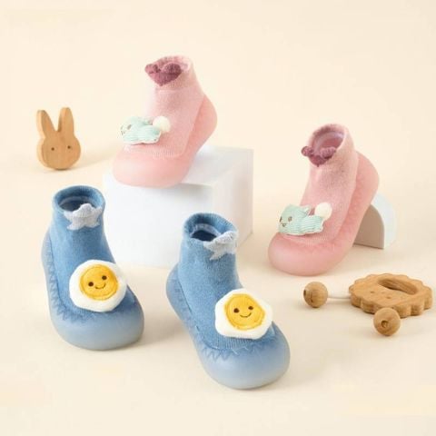 BST giày bún tập đi mới từ Uala Rogo là người bạn đáng yêu và an toàn cho bé trong giai đoạn tập đi. Thiết kế ôm nhẹ cổ chân như đôi tất, giày bún giúp bé tự do chạy nhảy mà không lo tuột giày khi vui đùa cùng bạn bè.