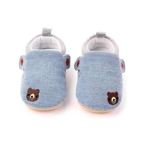 Giày cho trẻ em bằng vải màu xanh nhạt (họa tiết gấu nâu)