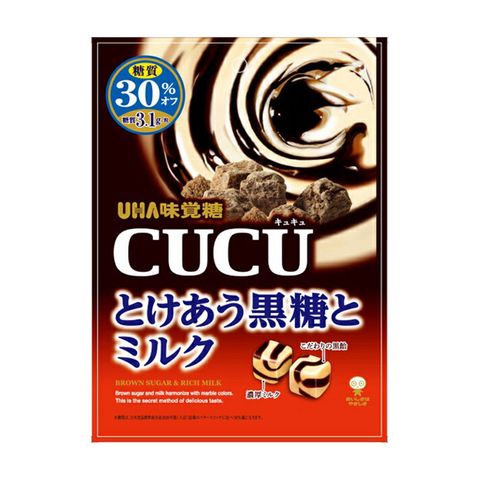 Kẹo Sữa UHA Cucu Vị Đường Nâu đã cắt giảm bớt 30% đường. Kẹo sữa đường nâu là loại kẹo được yêu thích tại Nhật Bản.