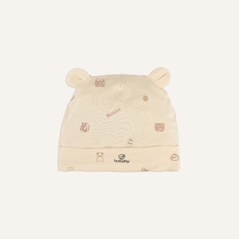 Mũ tròn tai gấu Bu Bambus - Kem in họa tiết kỷ vật