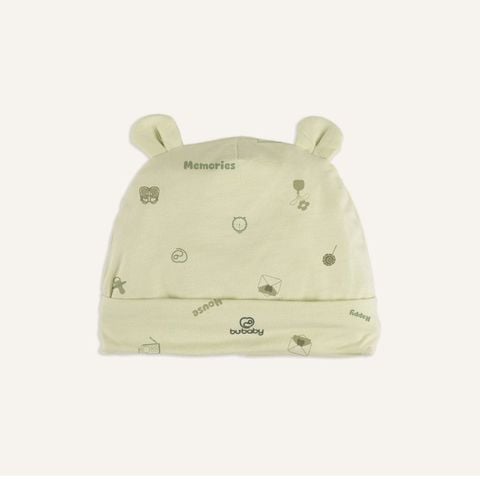 Mũ tròn tai gấu Bu Bambus - Xanh matcha in họa tiết kỷ vật