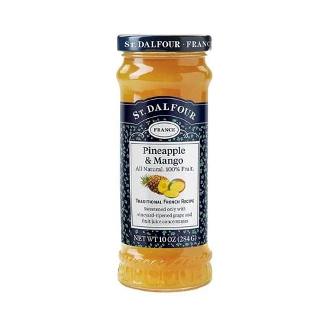 Mứt trái cây St Dalfour Four Fruits. Được làm thủ công tại Pháp theo công thức gia truyền. Cân bằng hoàn hảo với hương vị anh đào, mâm xôi đỏ, mâm xôi đen và dâu tây. Kết hợp hoàn hảo với bánh quế, sữa chua vani và bánh muffin Anh. 100% từ trái cây. Không đường mía. Không chất tạo ngọt nhân tạo. Không màu nhân tạo. Chỉ được tạo ngọt bằng nho chín vườn và nước ép trái cây. Không Gluten. Thuần chay.