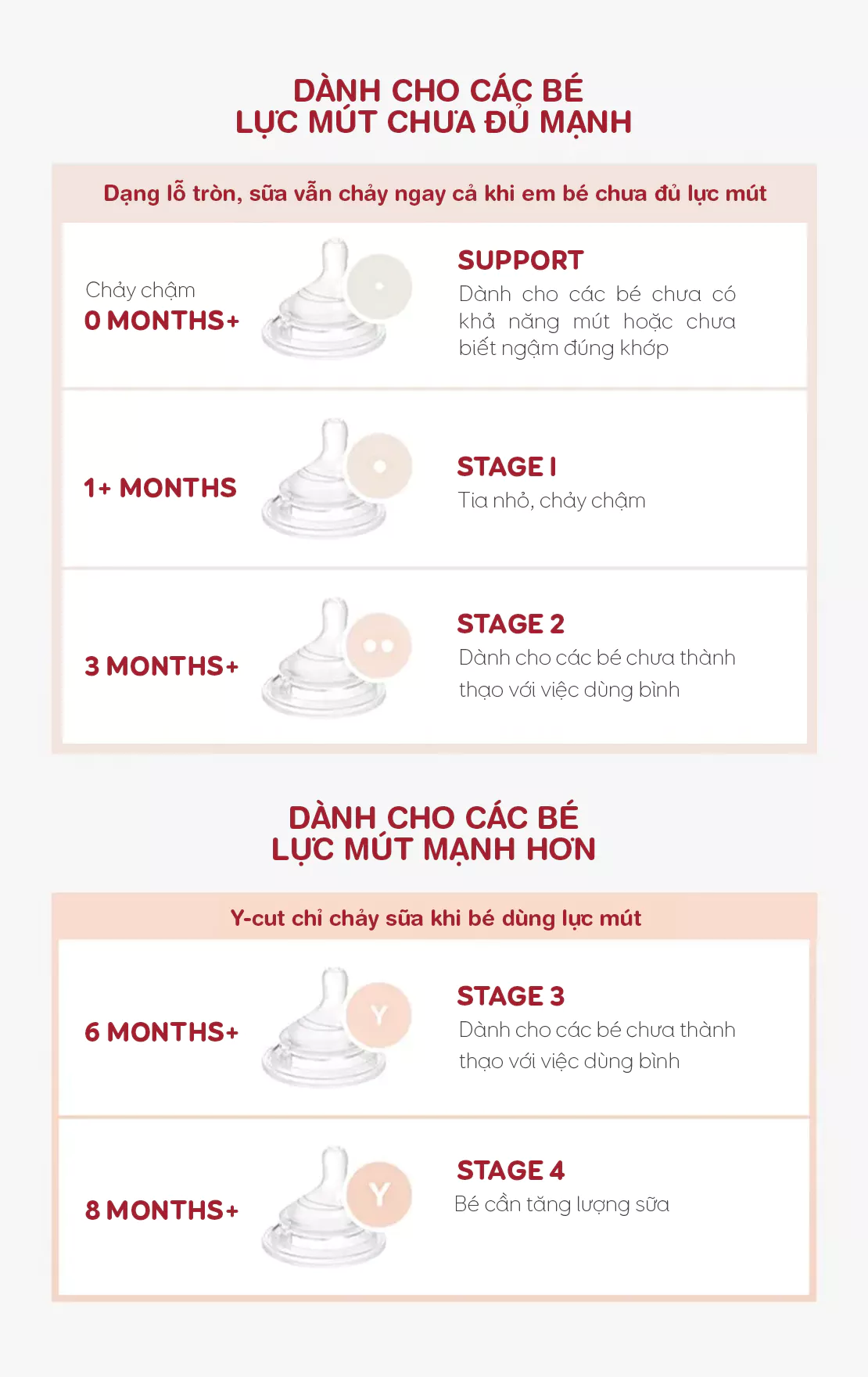 Núm số 4: cho bé từ 8 tháng tuổi trở lên, núm hình chữ Y rộng