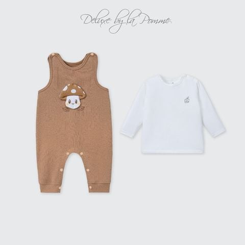 Set bộ yếm rời kèm áo dài tay La Pomme khu rừng vui nhộn Nâu