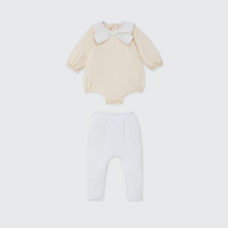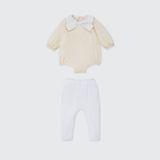 Set body chip dài tay kèm quần La Pomme cổ áo cách điệu Be