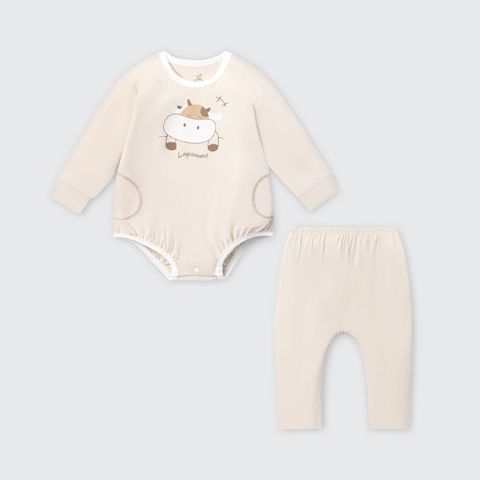 Set body chip dài tay kèm quần La Pomme thế giới vui nhộn Be