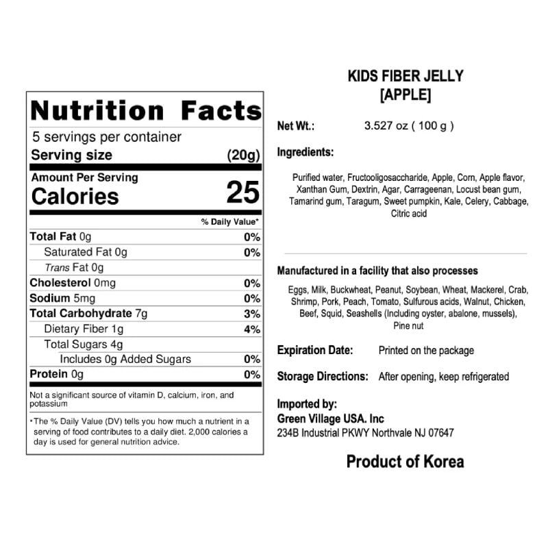 Thạch Táo giàu chất xơ bao gồm táo giàu đường tự nhiên và pectin, hỗ trợ tiêu hóa, cùng với bắp cải giàu chất xơ.